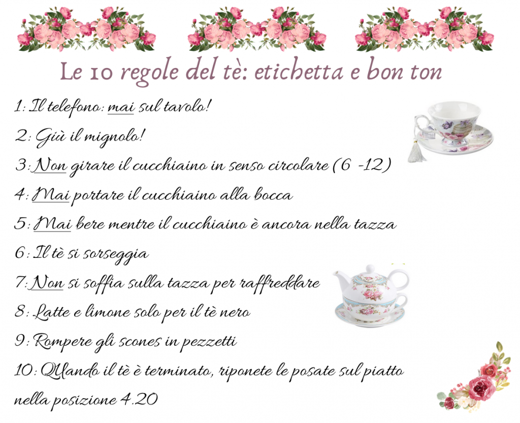 Ricordate: il cibo si mangia esclusivamente con le mani, la tazza si impugna rigorosamente dal manico, il tè va sorseggiato e…Giù il mignolo!